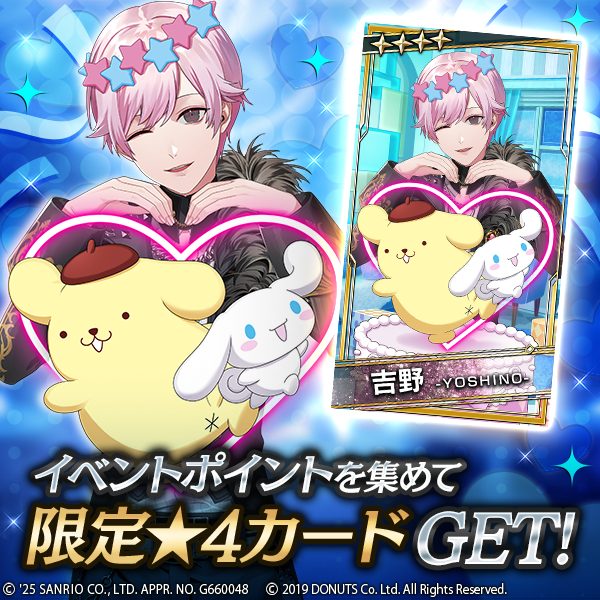 コラボカード2025確定ガチャチケットや、イベント報酬★4カード【ハピハピスターレス】吉野を手に入れましょう!