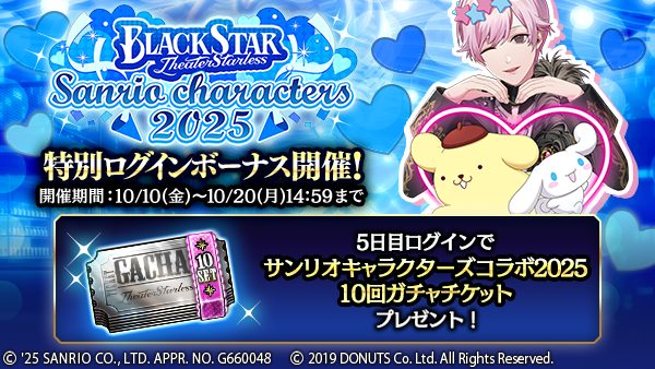 『ブラックスター -Theater Starless-』とサンリオキャラクターズのコラボイベント「BLACKSTAR×Sanrio characters 2025」が、2025年10月10日(金)18:00より開催!