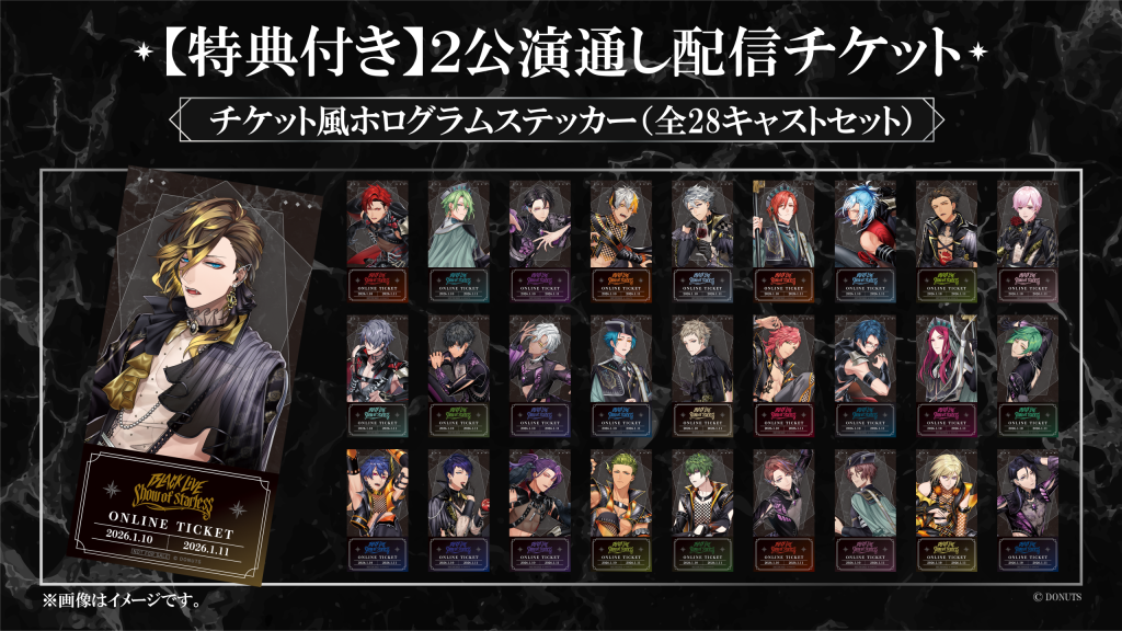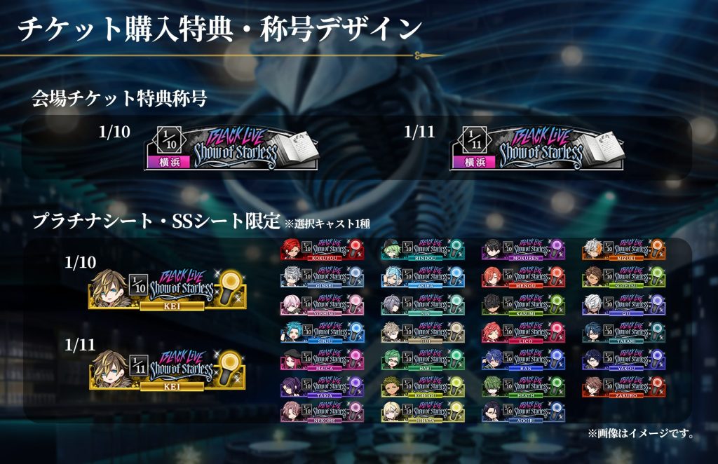 ③【ゲーム内アイテム】「BLACK LIVE -Show of Starless-」ゲーム内称号(28種のうち選択キャスト1種)